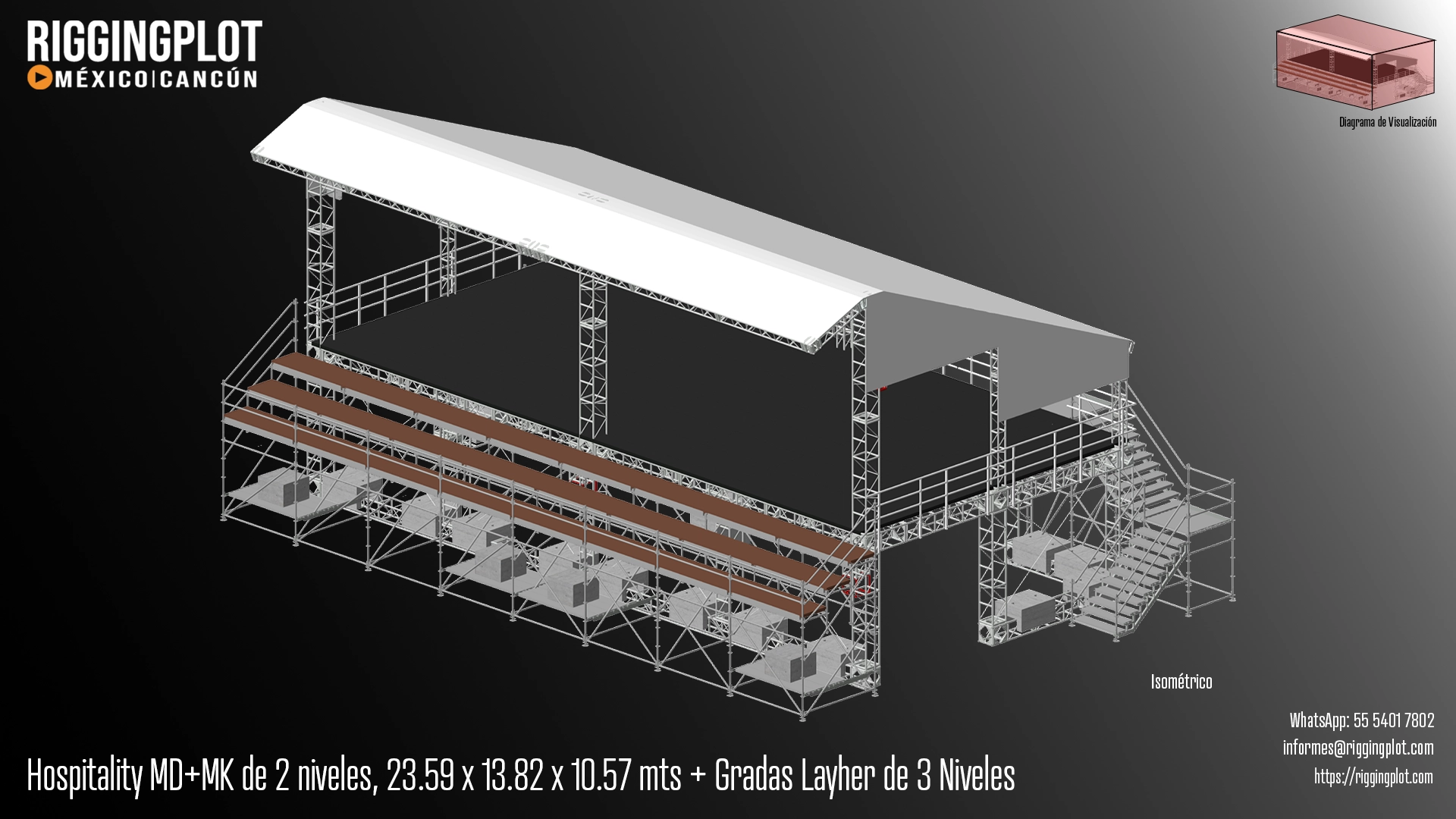 FICHA TÉCNICA HOSPITALITY MD-MK DE 2 NIVELES + GRADAS LAYHER DE 3 NIVELES CANCÚN